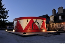 Le TAMBOUR a été créé au FESTIVAL D'ANJOU (49) avec la création de "La Peste" d'après Camus, dont il était la scénographie, puis s'est implanté à VITRÉ, LIRÉ, LE MANS, MAYENNE, LA HAIE-FOUASSIÈRE, VALLET, SAINT-BARTHÉLEMY D'ANJOU, TOULOUSE, ANGERS, AURAY, ANGERS, LES ROSIERS SUR LOIRE, GUÉRANDE, LEVALLOIS, ET ANCENIS.